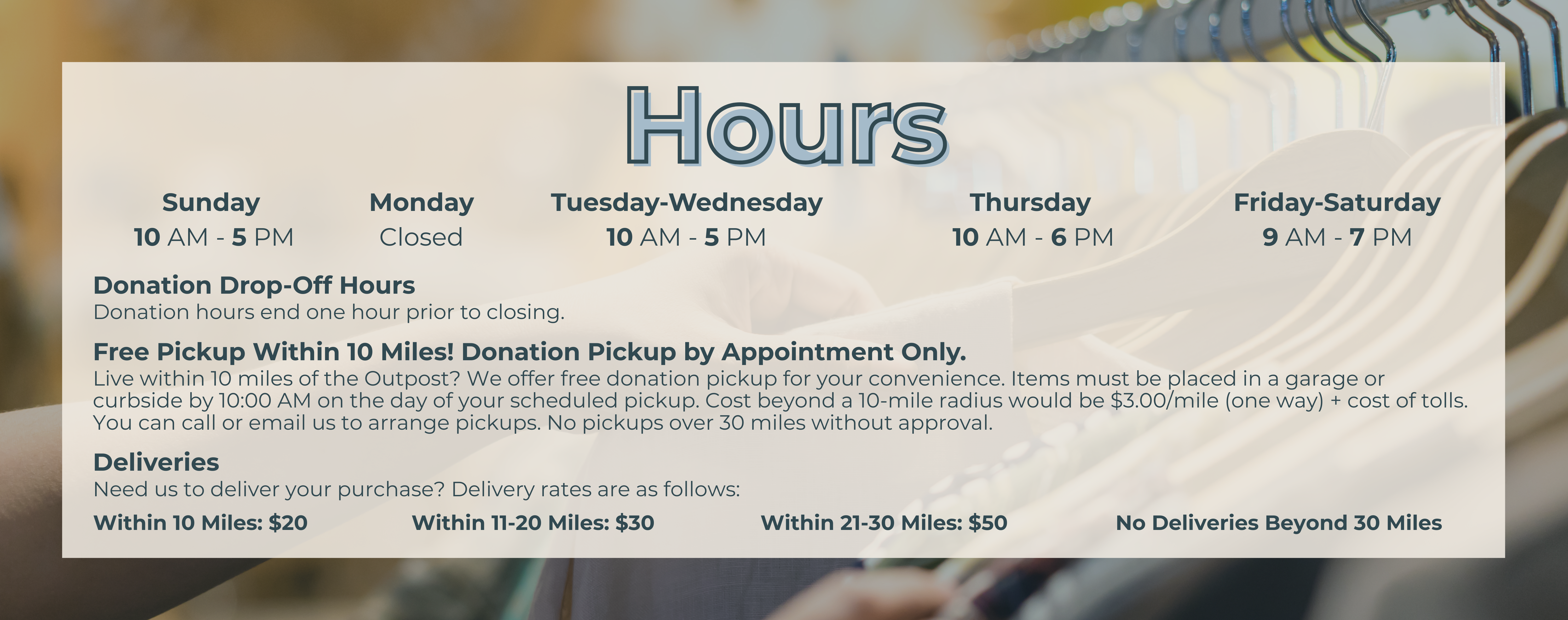For donation pickups that require inside access or expedited removal, we’re happy to help! These services are available for a small fee and must be scheduled in advance. Whether you're clearing out a home, managing a move, or just need extra support, we’ll work with you to make the process as easy as possible.